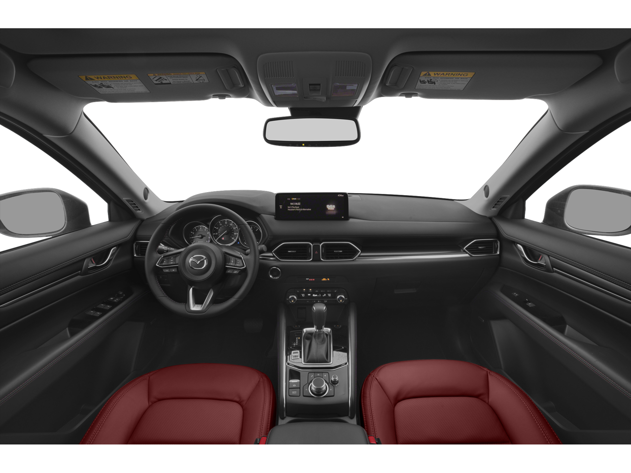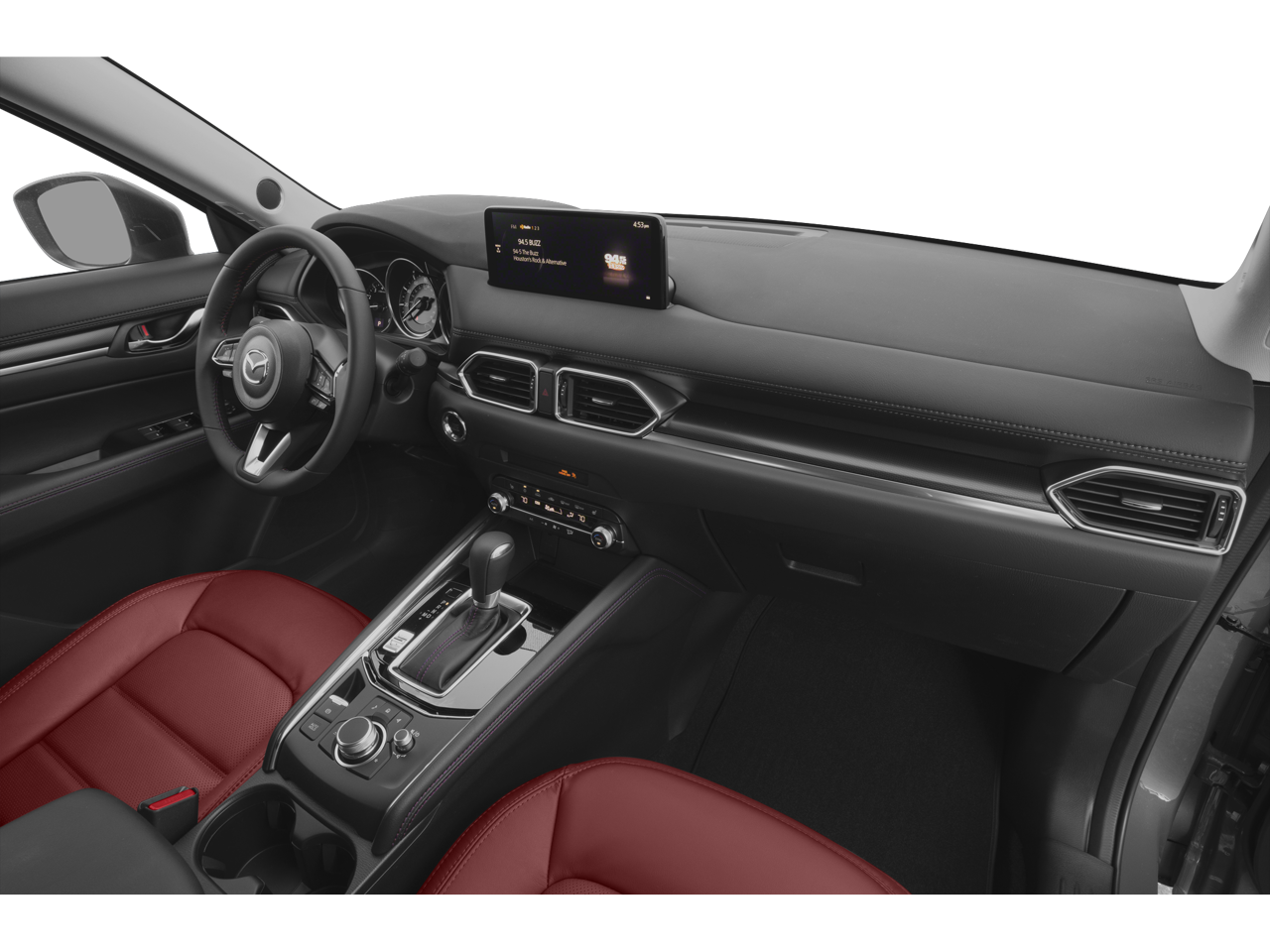 10 Speakers, AppLink/Apple CarPlay and Android Auto, Auto High-beam Headlights, Auto-dimming Rear-View mirror, Bose 10-Speaker Premium Audio Sound System, Delay-off headlights, Exterior Parking Camera Rear, Fully automatic headlights, Garage door transmitter: HomeLink, Heated front seats, Illuminated entry, Leather Seat Trim, Leather Shift Knob, Memory seat, Outside temperature display, Power door mirrors, Power driver seat, Power Liftgate, Power moonroof, Rain sensing wipers, Remote keyless entry, Spoiler, Steering wheel mounted audio controls, Telescoping steering wheel, Tilt steering wheel, Traction control, Turn signal indicator mirrors, Wheels: 19 x 7J Aluminum Alloy, 4-Wheel Disc Brakes, 4.411 Axle Ratio, ABS brakes, Air Conditioning, Alloy wheels, AM/FM radio, Automatic temperature control, Black Lug Nuts & Black Wheel Locks, Brake assist, Bumpers: body-color, Driver door bin, Driver vanity mirror, Dual front impact airbags, Dual front side impact airbags, Electronic Stability Control, Emergency communication system: MAZDA CONNECT, Four wheel independent suspension, Front anti-roll bar, Front Bucket Seats, Front Center Armrest, Front dual zone A/C, Front reading lights, Heated Front Bucket Seats, Low tire pressure warning, Occupant sensing airbag, Overhead airbag, Overhead console, Panic alarm, Passenger door bin, Passenger vanity mirror, Power passenger seat, Power steering, Power windows, Radio data system, Radio: AM/FM/HD Audio System, Rear anti-roll bar, Rear reading lights, Rear seat center armrest, Rear window defroster, Rear window wiper, Speed control, Speed-sensing steering, Split folding rear seat, Tachometer, Trip computer, and Variably intermittent wipers.