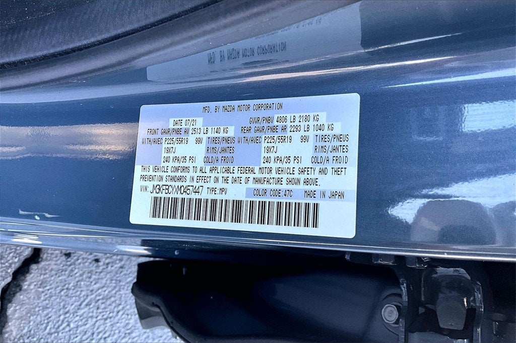 10 Speakers, AppLink/Apple CarPlay and Android Auto, Auto High-beam Headlights, Auto-dimming Rear-View mirror, Bose 10-Speaker Premium Audio Sound System, Delay-off headlights, Exterior Parking Camera Rear, Fully automatic headlights, Garage door transmitter: HomeLink, Heated front seats, Illuminated entry, Leather Seat Trim, Leather Shift Knob, Memory seat, Outside temperature display, Power door mirrors, Power driver seat, Power Liftgate, Power moonroof, Power passenger seat, Power windows, Rain sensing wipers, Rear window defroster, Remote keyless entry, Spoiler, Steering wheel mounted audio controls, Telescoping steering wheel, Tilt steering wheel, Traction control, Turn signal indicator mirrors, Wheels: 19 x 7J Aluminum Alloy, 4-Wheel Disc Brakes, 4.411 Axle Ratio, ABS brakes, Air Conditioning, Alloy wheels, AM/FM radio, Automatic temperature control, Black Lug Nuts & Black Wheel Locks, Brake assist, Bumpers: body-color, Driver door bin, Driver vanity mirror, Dual front impact airbags, Dual front side impact airbags, Electronic Stability Control, Emergency communication system: MAZDA CONNECT, Four wheel independent suspension, Front anti-roll bar, Front Bucket Seats, Front Center Armrest, Front dual zone A/C, Front reading lights, Heated Front Bucket Seats, Low tire pressure warning, Occupant sensing airbag, Overhead airbag, Overhead console, Panic alarm, Passenger door bin, Passenger vanity mirror, Power steering, Radio data system, Radio: AM/FM/HD Audio System, Rear anti-roll bar, Rear reading lights, Rear seat center armrest, Rear window wiper, Speed control, Speed-sensing steering, Split folding rear seat, Tachometer, Trip computer, and Variably intermittent wipers.