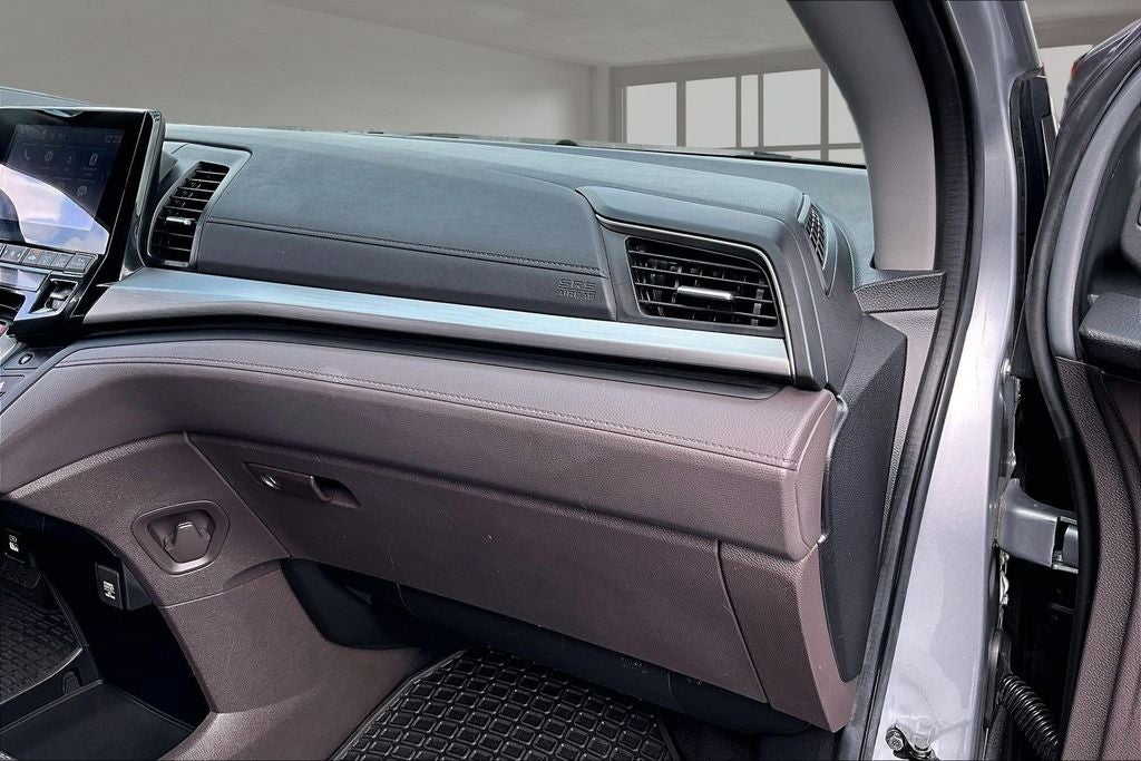 18 Machine-Finished Alloy Wheels, 3.61 Axle Ratio, 3rd row seats: split-bench, 4-Wheel Disc Brakes, 7 Speakers, A/V remote: CabinControl, ABS brakes, Adaptive Cruise Control: Adaptive Cruise Control (ACC) with Low-Speed Follow, Air Conditioning, Alloy wheels, AM/FM radio: SiriusXM, Anti-whiplash front head restraints, Apple CarPlay/Android Auto, Auto High-beam Headlights, Auto-dimming Rear-View mirror, Automatic temperature control, Blind Spot Information (BSI) System warning, Brake assist, Bumpers: body-color, Delay-off headlights, Driver door bin, Driver vanity mirror, Driver's Seat Mounted Armrest, Dual front impact airbags, Dual front side impact airbags, Electronic Stability Control, Exterior Parking Camera Rear, Forward collision: Collision Mitigation Braking System (CMBS) + FCW mitigation, Four wheel independent suspension, Front anti-roll bar, Front Bucket Seats, Front dual zone A/C, Front fog lights, Front reading lights, Fully automatic headlights, Garage door transmitter: HomeLink, Heated door mirrors, Heated Front Bucket Seats, Heated front seats, Illuminated entry, Knee airbag, Lane departure: Lane Keeping Assist System (LKAS) active, Leather Seat Trim, Leather steering wheel, Low tire pressure warning, Memory seat, Occupant sensing airbag, Outside temperature display, Overhead airbag, Overhead console, Panic alarm, Passenger door bin, Passenger seat mounted armrest, Passenger vanity mirror, Power door mirrors, Power driver seat, Power Liftgate, Power moonroof, Power passenger seat, Power steering, Power windows, Radio data system, Radio: 160-Watt AM/FM/HD/SiriusXM Audio System, Rear air conditioning, Rear anti-roll bar, Rear reading lights, Rear seat center armrest, Rear window defroster, Rear window wiper, Reclining 3rd row seat, Remote keyless entry, Security system, Speed control, Speed-sensing steering, Speed-Sensitive Wipers, Split folding rear seat, Spoiler, Steering wheel mounted audio controls, Tachometer, Telescoping steering wheel, Tilt steering wheel, Traction control, Trip computer, Turn signal indicator mirrors, and Variably intermittent wipers.