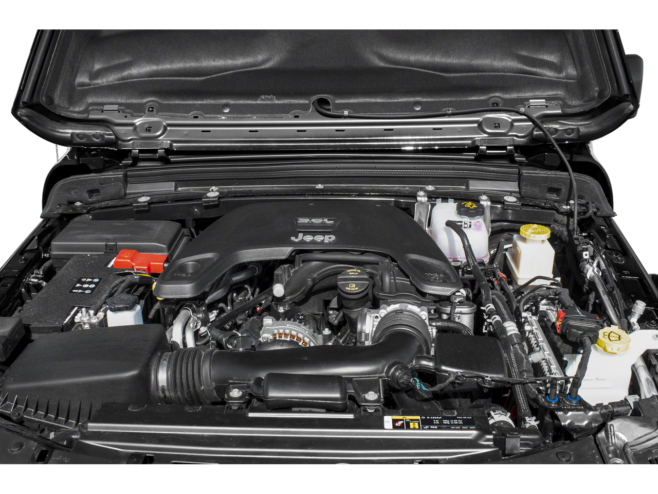 8.4 Radio & Premium Audio Group (1-Year SiriusXM Guardian Trial, 5-Year SiriusXM Traffic Service, 5-Year SiriusXM Travel Link Service, 8.4 Touchscreen Display, Alpine Premium Audio System, Auto-Dimming Rear-View Mirror, Emergency/Assistance Call, For Details, Visit DriveUconnect.com, GPS Navigation, HD Radio, Radio: Uconnect 4C Nav w/8.4 Display, SiriusXM Traffic Plus, and SiriusXM Travel Link), Auxiliary Switch Group (240 Amp Alternator, 700 Amp Maintenance Free Battery, and Auxiliary Switches), Quick Order Package 24D, Trailer Tow Package (Class IV Hitch Receiver, Heavy-Duty Engine Cooling, and Trailer Hitch Zoom), 97 mph Maximum Speed Calibration, Alloy wheels, Apple CarPlay/Android Auto, Body Color 3-Piece Hard Top, Electronic Stability Control, Freedom Panel Storage Bag, Front Center Armrest w/Storage, Garage door transmitter, Heated door mirrors, Heavy Duty Suspension w/Gas Shocks, Illuminated entry, No Soft Top, Outside temperature display, ParkView Rear Back-Up Camera, Premium Cloth Seats w/Sport Bolsters, Rear Sliding Window, Rear Window Defroster, Split folding rear seat, Telescoping steering wheel, Tilt steering wheel, Traction control, 4-Wheel Disc Brakes, 4.10 Rear Axle Ratio, 8 Speakers, ABS brakes, Air Conditioning, AM/FM radio: SiriusXM, Automatic temperature control, Body Color Fender Flares (2-Piece), Brake assist, Compass, Delay-off headlights, Driver door bin, Driver vanity mirror, Dual front impact airbags, Dual front side impact airbags, Front anti-roll bar, Front Bucket Seats, Front dual zone A/C, Front fog lights, Front License Plate Bracket, Front reading lights, Fully automatic headlights, Integrated roll-over protection, Leather steering wheel, Low tire pressure warning, Manufacturer's Statement of Origin, Occupant sensing airbag, Panic alarm, Passenger door bin, Passenger vanity mirror, Power door mirrors, Power steering, Power windows, Radio data system, Radio: Uconnect 4 w/7 Display, Rear anti-roll bar, Rear reading lights, Remote keyless entry, Security system, Speed control, Steering wheel mounted audio co