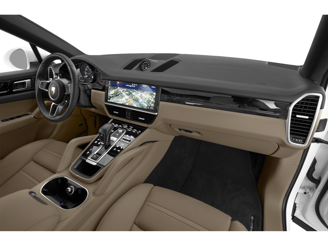 10 Speakers, 8-Way Power Sport Seats, Adaptive suspension, AM/FM radio: SiriusXM, Delay-off headlights, Exterior Parking Camera Rear, Front Bucket Seats, Garage door transmitter: HomeLink, Illuminated entry, Leather Seat Trim, Leather Shift Knob, Navigation System, Outside temperature display, Porsche Communication Management, Power door mirrors, Power driver seat, Power Liftgate, Power passenger seat, Rear fog lights, Spoiler, Steering wheel mounted audio controls, Telescoping steering wheel, Tilt steering wheel, 4-Wheel Disc Brakes, ABS brakes, Air Conditioning, Alloy wheels, Apple CarPlay, Automatic temperature control, Axle Ratio: TBD, Brake assist, Bumpers: body-color, Driver door bin, Driver vanity mirror, Dual front impact airbags, Dual front side impact airbags, Electronic Stability Control, Four wheel independent suspension, Front anti-roll bar, Front Center Armrest, Front dual zone A/C, Front reading lights, Fully automatic headlights, Heated door mirrors, Knee airbag, Low tire pressure warning, Occupant sensing airbag, Overhead airbag, Overhead console, Panic alarm, Passenger door bin, Passenger vanity mirror, Power steering, Power windows, Radio data system, Rain sensing wipers, Rear anti-roll bar, Rear reading lights, Rear seat center armrest, Rear side impact airbag, Rear window defroster, Remote keyless entry, Security system, Speed control, Split folding rear seat, Tachometer, Traction control, Trip computer, Turn signal indicator mirrors, Variably intermittent wipers, Voltmeter, and Wheels: 20 Cayenne Design.
