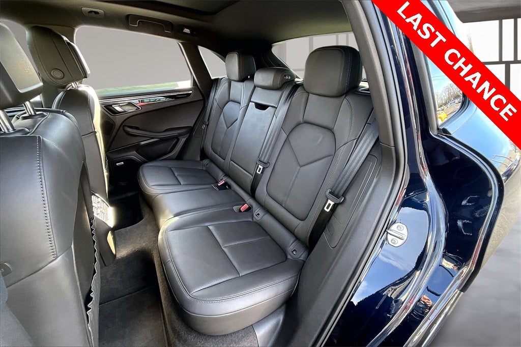 8-Way Power Seats, Alloy wheels, Apple CarPlay, Exterior Parking Camera Rear, Fully automatic headlights, Illuminated entry, Navigation System, Power Liftgate, Speed-sensing steering, Spoiler, Steering wheel mounted audio controls, Telescoping steering wheel, Tilt steering wheel, Traction control, 10 Speakers, 4-Wheel Disc Brakes, ABS brakes, Air Conditioning, AM/FM radio: SiriusXM, Automatic temperature control, Axle Ratio: 4.13, Brake assist, Bumpers: body-color, Delay-off headlights, Driver door bin, Driver vanity mirror, Dual front impact airbags, Dual front side impact airbags, Electronic Stability Control, Emergency communication system: Car Connect Services, Four wheel independent suspension, Front anti-roll bar, Front Bucket Seats, Front Center Armrest, Front dual zone A/C, Front fog lights, Front reading lights, Garage door transmitter: HomeLink, Heated door mirrors, Leather Shift Knob, Low tire pressure warning, Occupant sensing airbag, Outside temperature display, Overhead airbag, Overhead console, Panic alarm, Partial Leather Seat Trim w/Alcantara, Passenger door bin, Passenger vanity mirror, Porsche Communication Management, Power door mirrors, Power driver seat, Power passenger seat, Power steering, Power windows, Radio data system, Rain sensing wipers, Rear air conditioning, Rear anti-roll bar, Rear reading lights, Rear seat center armrest, Rear side impact airbag, Rear window defroster, Rear window wiper, Remote keyless entry, Security system, Speed control, Split folding rear seat, Sport steering wheel, Tachometer, Trip computer, Turn signal indicator mirrors, Variably intermittent wipers, and Wheels: 18 Macan.