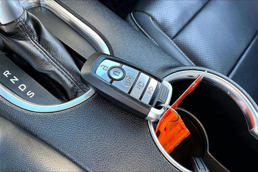 Black Accent Package (Wheels: 19 x 8.5 Ebony Black-Painted Aluminum), 4-Wheel Disc Brakes, ABS brakes, Air Conditioning, Alloy wheels, AM/FM Stereo, Auto High-beam Headlights, Auto-dimming Rear-View mirror, Brake assist, Bumpers: body-color, Compass, Delay-off headlights, Driver door bin, Driver vanity mirror, Dual front impact airbags, Dual front side impact airbags, Electronic Stability Control, Emergency communication system: 911 Assist, Exterior Parking Camera Rear, Four wheel independent suspension, Front anti-roll bar, Front Bucket Seats, Front Center Armrest, Front reading lights, Fully automatic headlights, Illuminated entry, Knee airbag, Leather Shift Knob, Low tire pressure warning, Occupant sensing airbag, Outside temperature display, Overhead airbag, Overhead console, Panic alarm, Passenger door bin, Passenger vanity mirror, Power door mirrors, Power steering, Power windows, Radio data system, Rain sensing wipers, Rear anti-roll bar, Rear Parking Sensors, Rear window defroster, Remote keyless entry, Security system, SiriusXM Radio, Speed control, Speed-sensing steering, Speed-Sensitive Wipers, Split folding rear seat, Steering wheel mounted audio controls, SYNC 3 Communications & Entertainment System, Tachometer, Telescoping steering wheel, Tilt steering wheel, Traction control, Trip computer, Variably intermittent wipers, Voltmeter, and Wheels: 18 x 8 Machined-Face Aluminum.