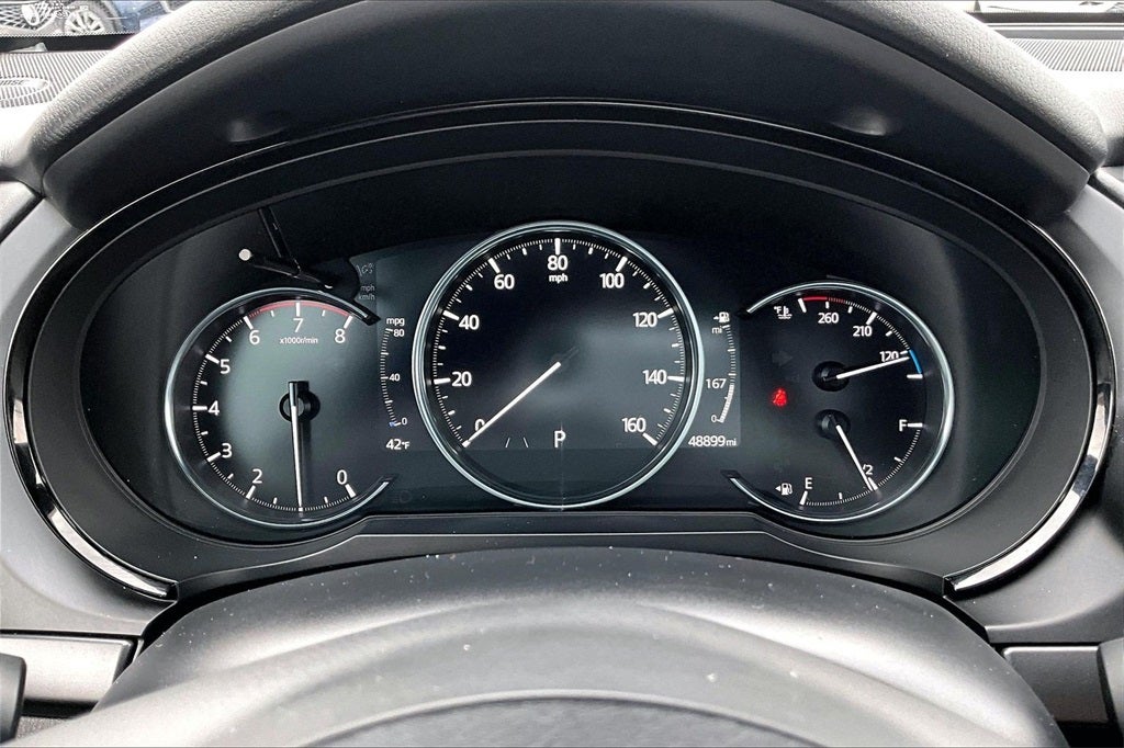 12 Speakers, 3rd row seats: bench, 4-Wheel Disc Brakes, 4.411 Axle Ratio, ABS brakes, Air Conditioning, Alloy wheels, AM/FM radio: SiriusXM, AppLink/Apple CarPlay and Android Auto, Auto High-beam Headlights, Auto-dimming Rear-View mirror, Automatic temperature control, Black Lug Nuts & Black Wheel Locks, Brake assist, Bumpers: body-color, Compass, Delay-off headlights, Driver door bin, Driver vanity mirror, Dual front impact airbags, Dual front side impact airbags, E911 Automatic Emergency Notification, Electronic Stability Control, Emergency communication system: MAZDA CONNECT, Exterior Parking Camera Rear, Four wheel independent suspension, Front anti-roll bar, Front Bucket Seats, Front Center Armrest, Front dual zone A/C, Front fog lights, Front reading lights, Fully automatic headlights, Garage door transmitter: HomeLink, Heated door mirrors, Heated front seats, Heated rear seats, Heated steering wheel, Heated/Ventilated Front Bucket Seats, Illuminated entry, Infotainment System Voice Command, Leather Seat Trim, Leather Shift Knob, Leather steering wheel, Low tire pressure warning, Mazda Connected Services, Memory seat, Occupant sensing airbag, Outside temperature display, Overhead airbag, Overhead console, Pandora Internet Radio Integration, Panic alarm, Passenger door bin, Passenger vanity mirror, Power door mirrors, Power driver seat, Power Liftgate, Power moonroof, Power passenger seat, Power steering, Power windows, Radio Broadcast Data System Program Information, Radio data system, Radio: AM/FM w/Bose Premium Audio System, Rain sensing wipers, Rear air conditioning, Rear anti-roll bar, Rear reading lights, Rear window defroster, Rear window wiper, Remote keyless entry, Roadside Assistance Kit, SiriusXM Satellite Radio, SMS Text Msg Audio Delivery & Reply, Speed control, Speed-sensing steering, Split folding rear seat, Spoiler, Steering wheel mounted audio controls, Tachometer, Telescoping steering wheel, Tilt steering wheel, Traction control, Trip computer, Turn signal indicator mirrors, Variably intermittent wipers, Ventilated front seats, and Wheels: 20 x 8.5J Aluminum Alloy.