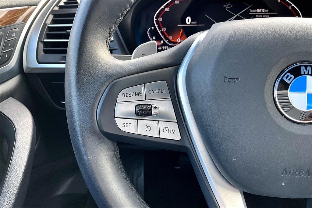 Connected Package Pro, Convenience Package (Comfort Access Keyless Entry and Driver Lumbar Support), Alloy wheels, AM/FM radio: SiriusXM, Apple CarPlay & Android Auto Compatibility, Auto High-beam Headlights, Enhanced USB & Bluetooth® w/Smartphone Integration, Exterior Parking Camera Rear, Fully automatic headlights, Hi-Fi Sound System, Illuminated entry, Memory seat, Navigation System, Power Front Seats, Power Liftgate, Power moonroof: Panorama, Rain sensing wipers, Steering wheel mounted audio controls, Telescoping steering wheel, Tilt steering wheel, 12 Speakers, 3.39 Axle Ratio, 4-Wheel Disc Brakes, ABS brakes, Air Conditioning, Anti-whiplash front head restraints, Auto-dimming door mirrors, Auto-dimming Rear-View mirror, Automatic temperature control, BMW Assist eCall, BMW TeleServices, Brake assist, Bumpers: body-color, ConnectedDrive Services, Delay-off headlights, Driver door bin, Driver vanity mirror, Dual front impact airbags, Dual front side impact airbags, Electronic Stability Control, Emergency communication system: BMW Assist eCall, Four wheel independent suspension, Front anti-roll bar, Front Bucket Seats, Front Center Armrest, Front dual zone A/C, Front reading lights, Garage door transmitter, Genuine wood dashboard insert, Genuine wood door panel insert, Heated door mirrors, Knee airbag, Live Cockpit Pro w/Navi, Low tire pressure warning, Occupant sensing airbag, Outside temperature display, Overhead airbag, Overhead console, Panic alarm, Passenger door bin, Passenger vanity mirror, Perforated SensaTec Upholstery, Power door mirrors, Power driver seat, Power passenger seat, Power steering, Power windows, Radio data system, Radio: AM/FM Audio System, Rear air conditioning, Rear anti-roll bar, Rear reading lights, Rear seat center armrest, Rear window defroster, Remote keyless entry, Security system, SiriusXM Satellite Radio, Speed control, Speed-sensing steering, Speed-Sensitive Wipers, Split folding rear seat, Sport Seats, Sport steering wheel, Tachometer, Traction control, Trip computer, Turn signal indicator mirrors, Variably intermittent wipers, Wheels: 19 x 7.5 Y-Spoke (Style 693), and WiFi Hotspot.
