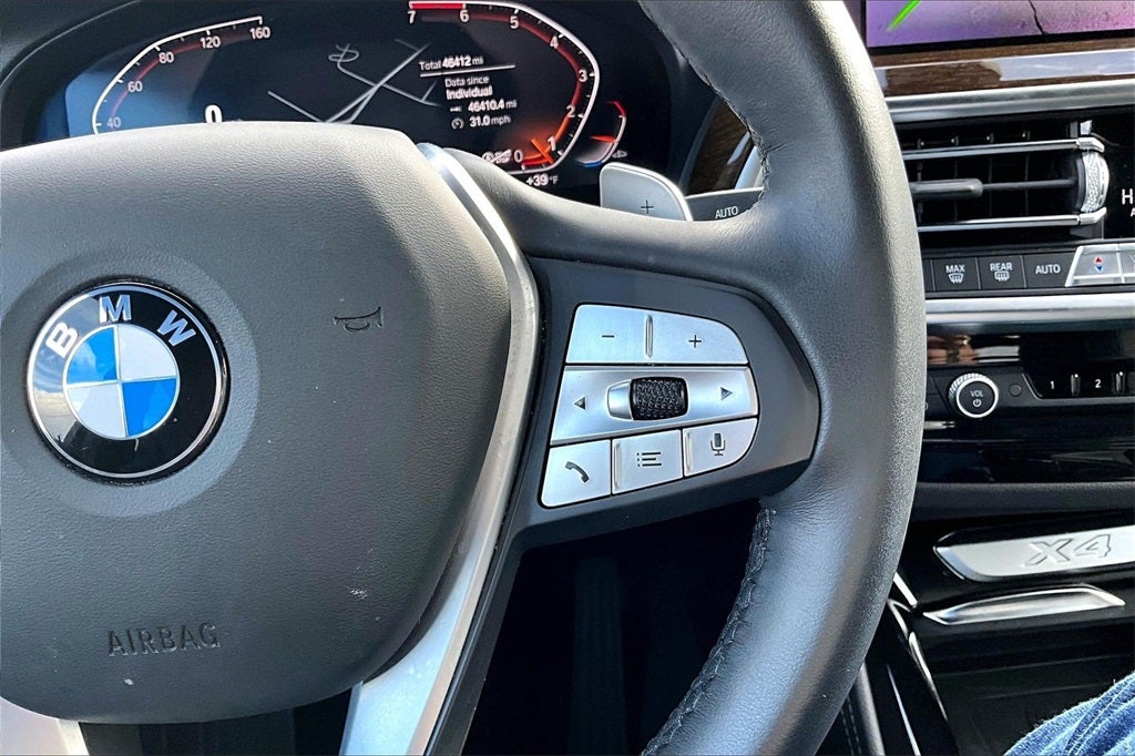 2023 BMW X4 xDrive30i Jet Black CARFAX One Owner!, Alloy wheels, AM/FM radio: SiriusXM, Apple CarPlay & Android Auto Compatibility, Auto High-beam Headlights, Comfort Access Keyless Entry, Connected Package Pro, Convenience Package, Driver Lumbar Support, Enhanced USB & Bluetooth® w/Smartphone Integration, Exterior Parking Camera Rear, Fully automatic headlights, Hi-Fi Sound System, Illuminated entry, Memory seat, Navigation System, Power Front Seats, Power Liftgate, Power moonroof: Panorama, Rain sensing wipers, Steering wheel mounted audio controls, Telescoping steering wheel, Tilt steering wheel. 4D Sport Utility AWD 2.0L I4 TwinPower Turbo 8-Speed Automatic Sport