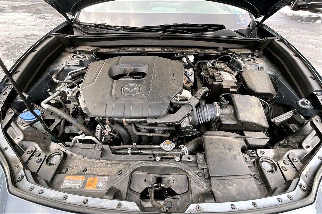 8 Speakers, Alloy wheels, AppLink/Apple CarPlay and Android Auto, Auto High-beam Headlights, Automatic temperature control, Cargo Tray, Compass, Delay-off headlights, Emergency communication system: Mazda Connected Services (3-year complimentary trial included), Exterior Parking Camera Rear, Fully automatic headlights, Heated door mirrors, Heated Front Bucket Seats, Illuminated entry, Leather Seat Trim, Leather Shift Knob, Leather steering wheel, Memory seat, Outside temperature display, Power door mirrors, Power driver seat, Power moonroof, Rain sensing wipers, Rear window defroster, Remote keyless entry, Speed-sensing steering, Spoiler, Steering wheel mounted audio controls, Telescoping steering wheel, Tilt steering wheel, Turn signal indicator mirrors, 4-Wheel Disc Brakes, 4.095 Axle Ratio, ABS brakes, Air Conditioning, AM/FM radio, Black Lug Nuts & Black Wheel Locks, Brake assist, Bumpers: body-color, Driver door bin, Driver vanity mirror, Dual front impact airbags, Dual front side impact airbags, Electronic Stability Control, Front anti-roll bar, Front Bucket Seats, Front Center Armrest, Front dual zone A/C, Front reading lights, Front wheel independent suspension, Heated front seats, Knee airbag, Low tire pressure warning, MAZDA CONNECT Infotainment System, Occupant sensing airbag, Overhead airbag, Overhead console, Panic alarm, Passenger door bin, Passenger vanity mirror, Power steering, Power windows, Radio data system, Radio: AM/FM/HD Audio System, Rear seat center armrest, Rear side impact airbag, Rear window wiper, Speed control, Split folding rear seat, Stainless Steel Rear Bumper Guard, Tachometer, Traction control, Trip computer, Variably intermittent wipers, and Wheels: 18 x 7J Aluminum Alloy.