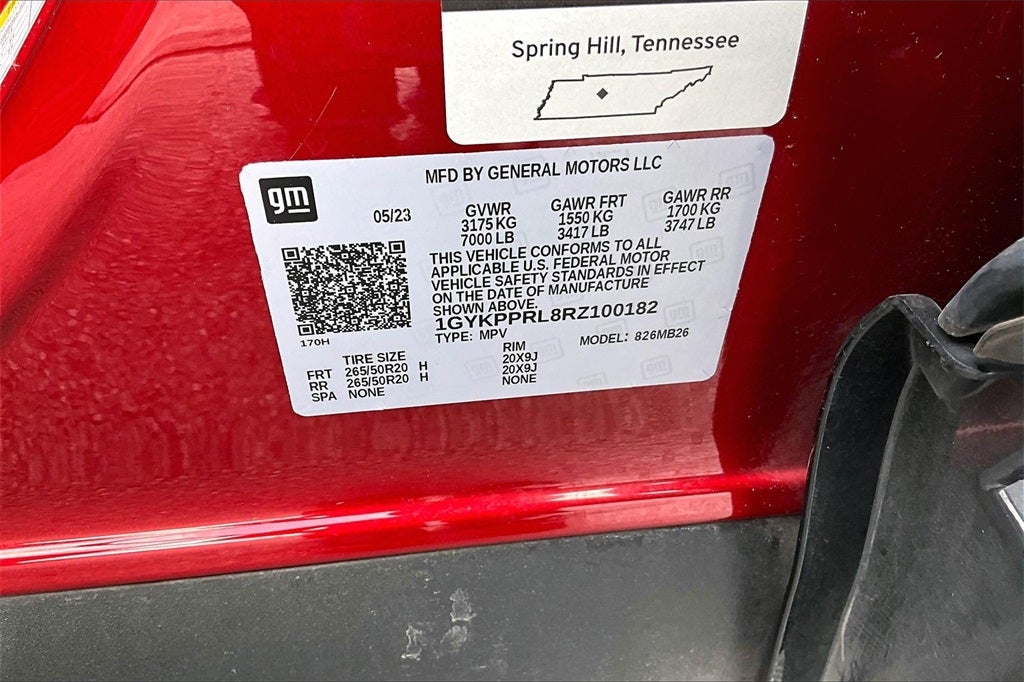 Driver Assist Package (Enhanced Automatic Parking Assist, HD Surround Vision, Intersection Automatic Emergency Braking, Power-Folding Outside Heated Mirrors, Rear Pedestrian Alert, and Side Bicyclist Alert), AKG Studio 19-Speaker System, Apple CarPlay/Android Auto, Auto High-beam Headlights, Auto-dimming door mirrors, Auto-dimming Rear-View mirror, Battery Pack Origin, Black Roof, Charging Module, Driver & Front Passenger Heated Seats, Driver 4-Way Power Lumbar Seat Adjustment, Front Passenger 4-Way Power Lumbar Seat Adjustment, Fully automatic headlights, Garage door transmitter, Heated door mirrors, Heated front seats, Hitch Guidance w/Trailering Assist Guideline, Illuminated entry, Illuminated Front Door Sill Plates, Inteluxe Seat Trim, Leather steering wheel, Navigation system: Google Automotive Services Capable, Outside temperature display, Power door mirrors, Power Liftgate, Power passenger seat, Rain sensing wipers, Steering wheel mounted audio controls, Telescoping steering wheel, Turn signal indicator mirrors, Wheels: 20 Split 6-Spoke Alloy, 11.63 Axle Ratio, 4-Wheel Disc Brakes, 8-Way Power Driver Seat Adjuster, ABS brakes, Air Conditioning, Alloy wheels, AM/FM radio: SiriusXM with 360L, Automatic temperature control, Brake assist, Bumpers: body-color, Compass, Delay-off headlights, Driver door bin, Driver vanity mirror, Dual front impact airbags, Dual front side impact airbags, Electronic Stability Control, Emergency communication system: OnStar and Cadillac connected services capable, Four wheel independent suspension, Front anti-roll bar, Front Bucket Seats, Front Center Armrest, Front dual zone A/C, Front License Plate Bracket, Front reading lights, Heated steering wheel, Hitch View, Knee airbag, Low tire pressure warning, Memory seat, Occupant sensing airbag, Overhead airbag, Overhead console, Panic alarm, Passenger door bin, Passenger vanity mirror, Power driver seat, Power steering, Power windows, Premium Suspension, Radio data system, Radio: Google Built-In Infotainment Experience, Rear anti-roll bar, Rear reading lights, Rear seat center armrest, Rear window defroster, Remote keyless entry, Security