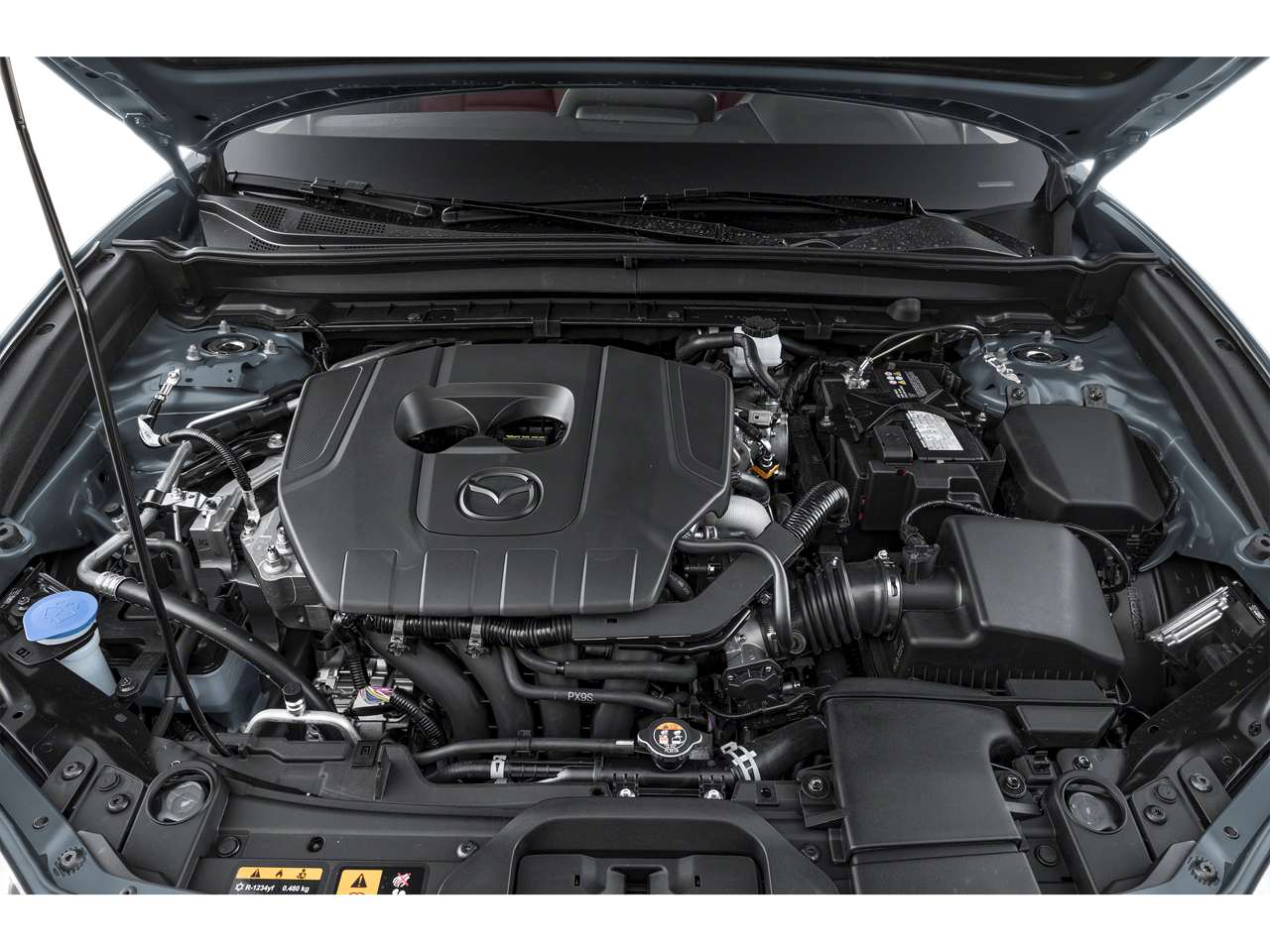 Alloy wheels, AppLink/Apple CarPlay and Android Auto, Auto High-beam Headlights, Black Mazda Logo Slimline License Plate Frame, Cargo Tray, Compass, Exterior Parking Camera Rear, Fully automatic headlights, Heated door mirrors, Heated Front Bucket Seats, Illuminated entry, Leather Shift Knob, Leather steering wheel, MAZDA CONNECT Infotainment System, Memory seat, Outside temperature display, Power door mirrors, Power driver seat, Power moonroof, Rain sensing wipers, Remote keyless entry, Speed-sensing steering, Spoiler, Steering wheel mounted audio controls, Telescoping steering wheel, Tilt steering wheel, Turn signal indicator mirrors, 4-Wheel Disc Brakes, 4.095 Axle Ratio, 8 Speakers, ABS brakes, Air Conditioning, AM/FM radio, Automatic temperature control, Brake assist, Bumpers: body-color, Delay-off headlights, Driver door bin, Driver vanity mirror, Dual front impact airbags, Dual front side impact airbags, Electronic Stability Control, Emergency communication system: Mazda Connected Services (3-year complimentary trial included), Front anti-roll bar, Front Bucket Seats, Front Center Armrest, Front dual zone A/C, Front reading lights, Front wheel independent suspension, Heated front seats, Knee airbag, Leather Seat Trim, Low tire pressure warning, Occupant sensing airbag, Overhead airbag, Overhead console, Panic alarm, Passenger door bin, Passenger vanity mirror, Power steering, Power windows, Radio data system, Radio: AM/FM/HD Audio System, Rear seat center armrest, Rear side impact airbag, Rear window defroster, Rear window wiper, Speed control, Split folding rear seat, Tachometer, Traction control, Trip computer, Variably intermittent wipers, and Wheels: 18 x 7J Aluminum Alloy.