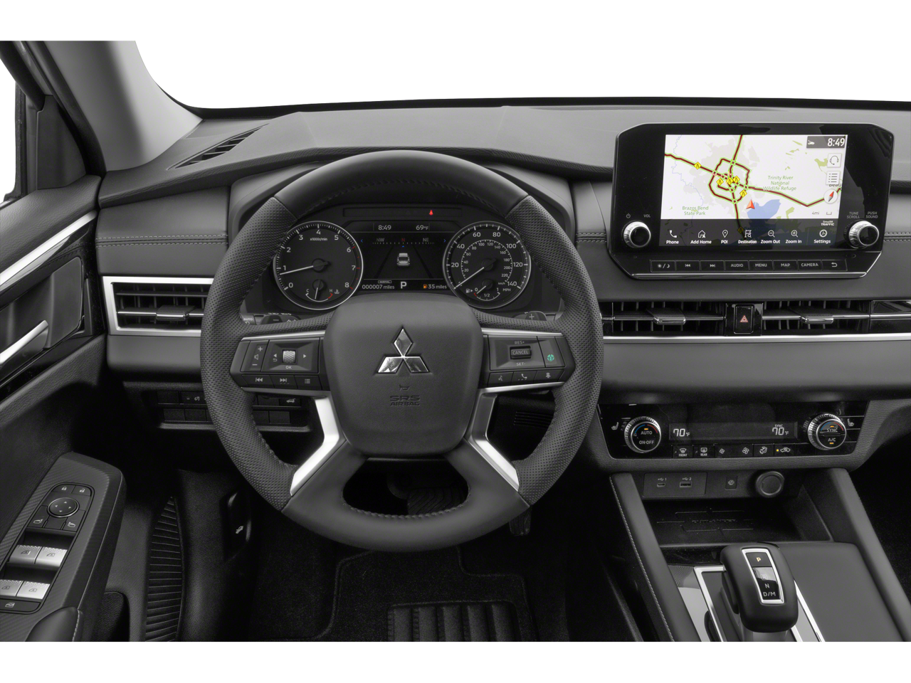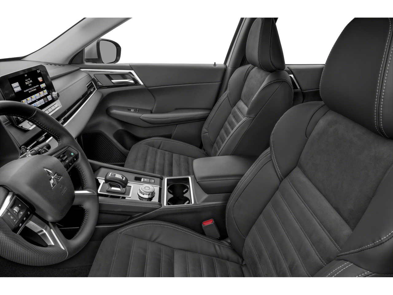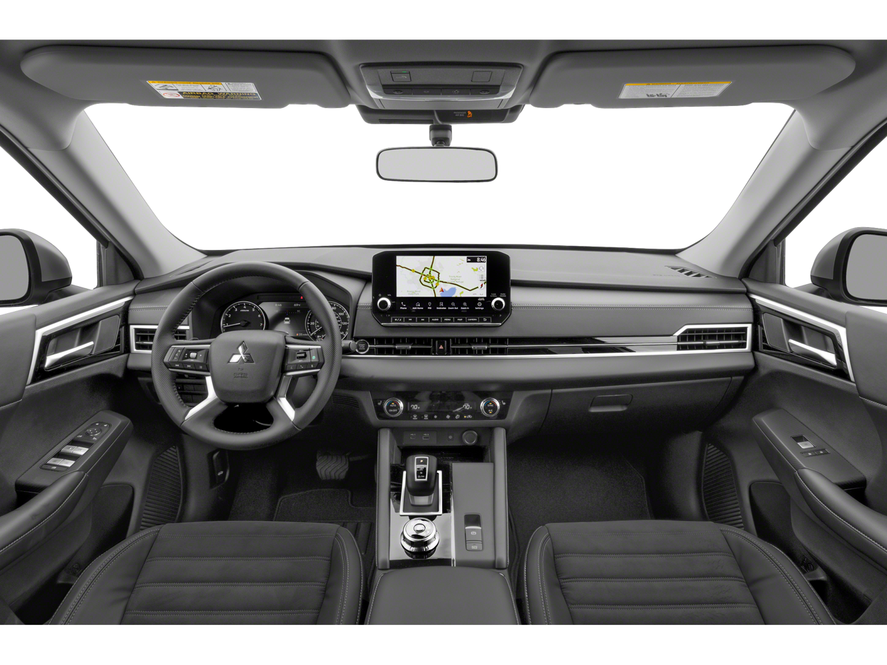 3rd row seats: split-bench, 4-Wheel Disc Brakes, 5.694 Axle Ratio, 6 Speakers, ABS brakes, Air Conditioning, Alloy wheels, AM/FM radio: SiriusXM, Android Auto & Apple CarPlay, Auto High-beam Headlights, Automatic temperature control, Brake assist, Bumpers: body-color, Driver door bin, Driver vanity mirror, Dual front impact airbags, Dual front side impact airbags, Electronic Stability Control, Emergency communication system: Mitsubishi Connect w/ 24-month trial, Exterior Parking Camera Rear, Four wheel independent suspension, Front anti-roll bar, Front Bucket Seats, Front Center Armrest w/Storage, Front dual zone A/C, Front fog lights, Front reading lights, Fully automatic headlights, Headlight cleaning, Heated door mirrors, Heated Front Bucket Seats, Heated front seats, Illuminated entry, Knee airbag, Leather Shift Knob, Leather steering wheel, Low tire pressure warning, Navigation System, Occupant sensing airbag, Outside temperature display, Overhead airbag, Overhead console, Panic alarm, Passenger door bin, Passenger vanity mirror, Power door mirrors, Power driver seat, Power Liftgate, Power steering, Power windows, Radio data system, Radio: AM/FM 9.0 Navigation w/Smartphone Link, Rain sensing wipers, Rear anti-roll bar, Rear seat center armrest, Rear side impact airbag, Rear window defroster, Rear window wiper, Reclining 3rd row seat, Remote keyless entry, Security system, Speed control, Speed-Sensitive Wipers, Split folding rear seat, Spoiler, Steering wheel mounted audio controls, Synthetic Leather Seat Trim, Tachometer, Telescoping steering wheel, Tilt steering wheel, Traction control, Trip computer, Turn signal indicator mirrors, and Variably intermittent wipers.