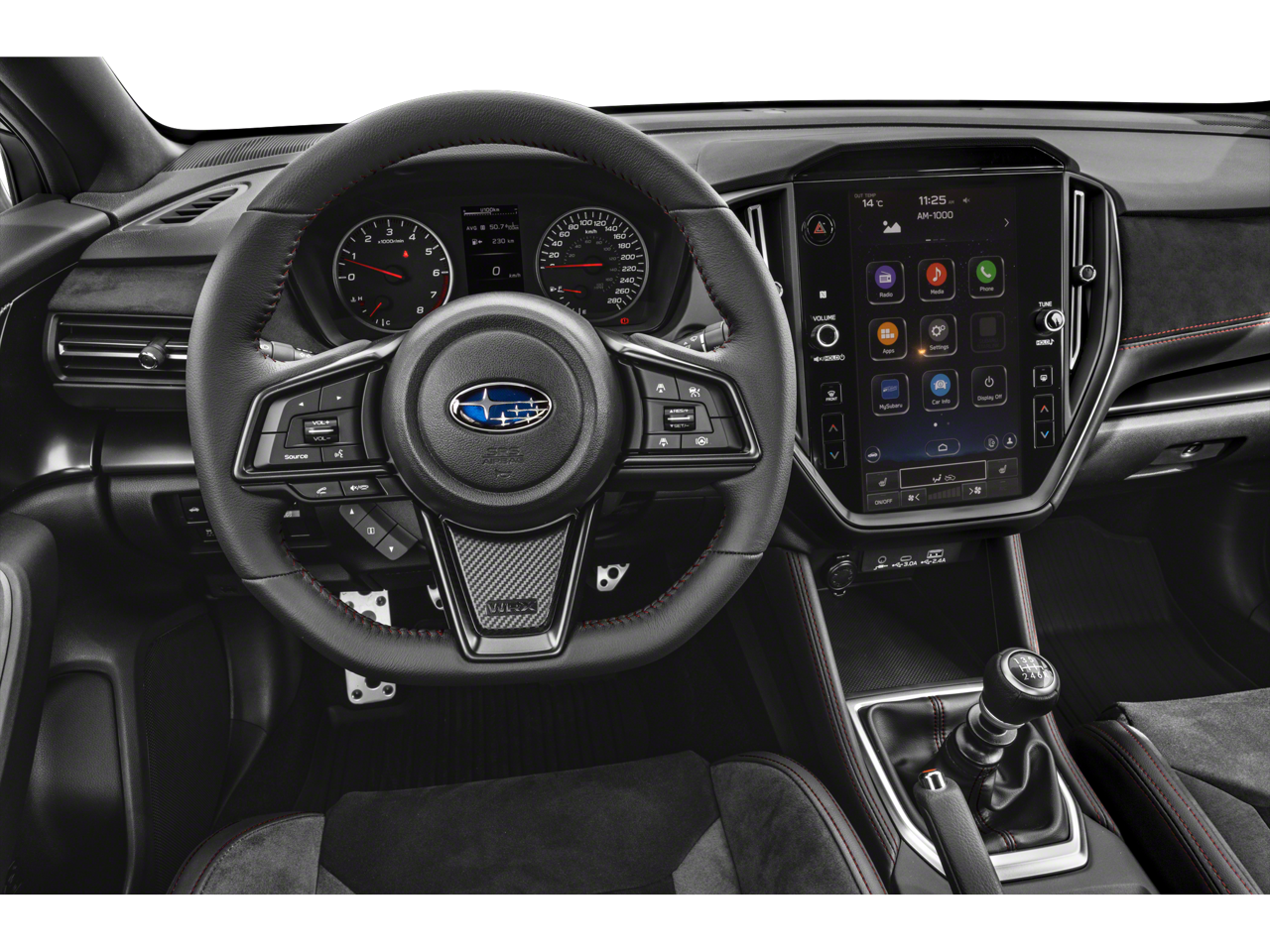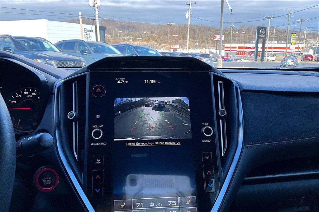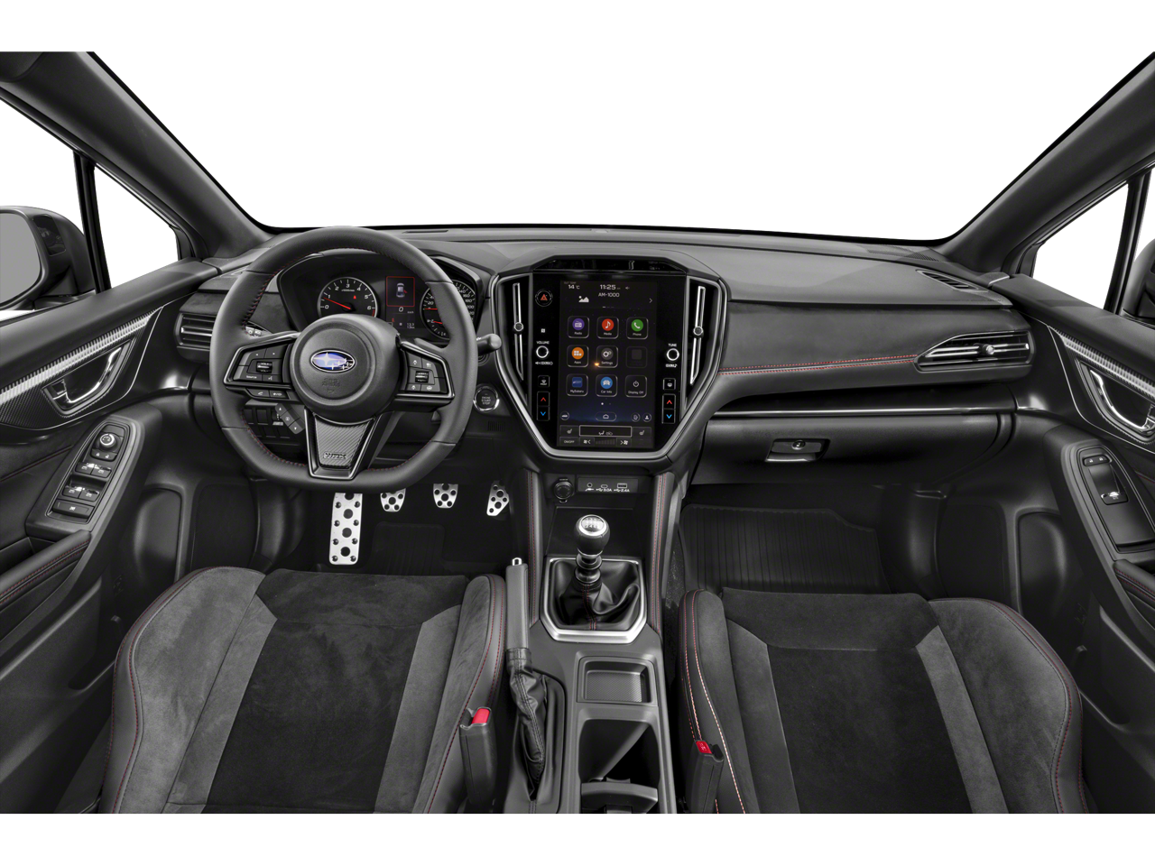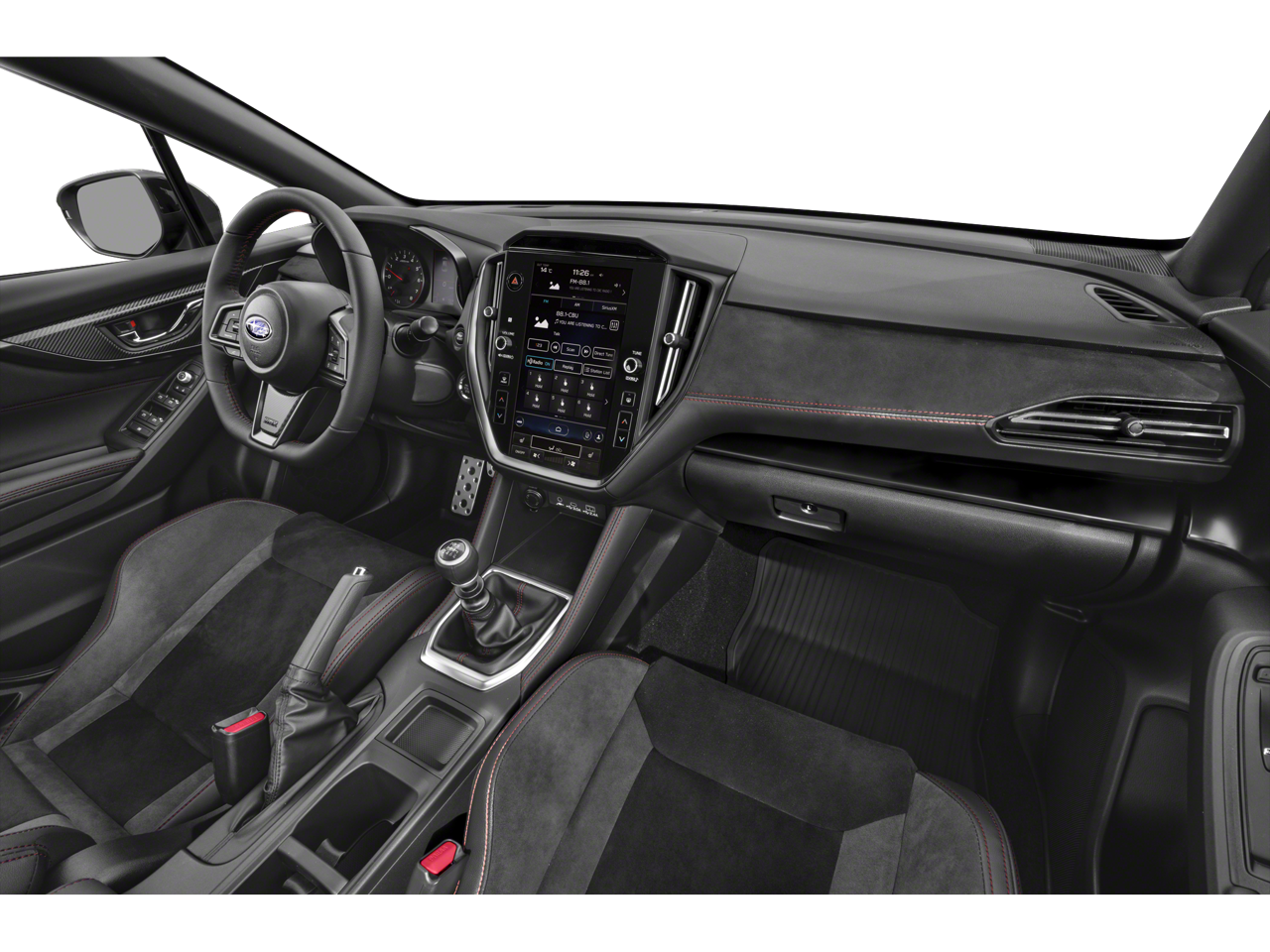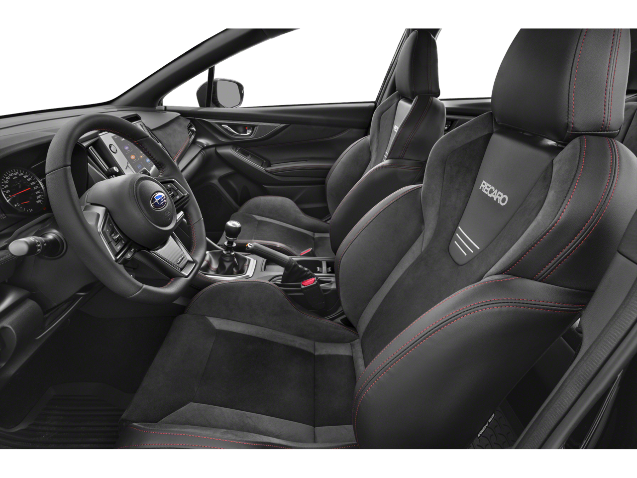 Standard Model, All-Weather Floor Liners, Alloy wheels, Auto High-beam Headlights, Auto-Dimming Exterior Mirror w/Approach Light, Auto-Dimming Mirror w/Compass & HomeLink, Auto-dimming Rear-View mirror, Exterior Parking Camera Rear, Fully automatic headlights, harman/kardon® Speakers, Heated door mirrors, Heated front seats, Illuminated entry, Leather Shift Knob, Leather steering wheel, Navigation System, Outside temperature display, Performance Design Recaro Heated Frt Bucket Seats, Power door mirrors, Power driver seat, Radio: Subaru STARLINK 11.6 Multimedia Plus Sys, Rear Seatback Protector, Sport steering wheel, STARLINK/Apple CarPlay/Android Auto, Steering wheel mounted audio controls, Telescoping steering wheel, Tilt steering wheel, Turn signal indicator mirrors, Ultrasuede & Leather-Trimmed Seats w/Red Stitching, 11 Speakers, 4-Wheel Disc Brakes, ABS brakes, Air Conditioning, AM/FM radio: SiriusXM, Automatic temperature control, Brake assist, Bumpers: body-color, Cargo Tray, Driver door bin, Driver vanity mirror, Dual front impact airbags, Dual front side impact airbags, Electronic Stability Control, Emergency communication system: STARLINK Safety and Security (Subscription Required), Four wheel independent suspension, Front anti-roll bar, Front Bucket Seats, Front Center Armrest, Front dual zone A/C, Front fog lights, Front reading lights, Knee airbag, Low tire pressure warning, Occupant sensing airbag, Overhead airbag, Overhead console, Panic alarm, Passenger door bin, Passenger vanity mirror, Power steering, Power windows, Radio data system, Rear anti-roll bar, Rear seat center armrest, Rear window defroster, Remote keyless entry, Security system, Speed control, Speed-sensing steering, Split folding rear seat, Spoiler, Tachometer, Traction control, Trip computer, Variably intermittent wipers, and Wheels: 19 x 8.5 Satin Gray Finish Alum Alloy.