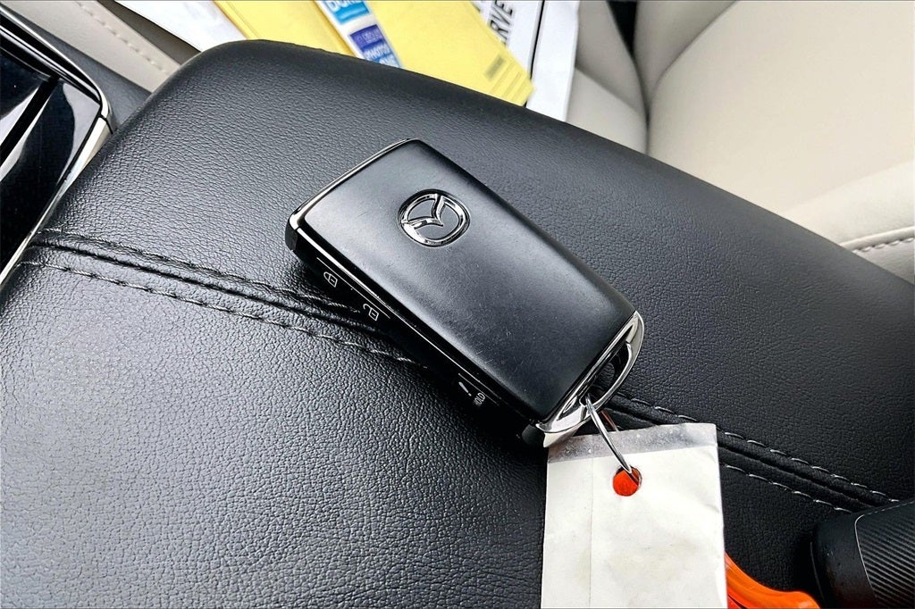 Alloy wheels, AppLink/Apple CarPlay and Android Auto, Auto High-beam Headlights, Automatic temperature control, Compass, Delay-off headlights, Emergency communication system: Mazda Connected Services (3-year trial subscription included), Exterior Parking Camera Rear, Fully automatic headlights, Heated door mirrors, Heated Front Bucket Seats, Heated front seats, Illuminated entry, Leather Shift Knob, Leather steering wheel, Leatherette Seat Trim, MAZDA CONNECT Infotainment System, Memory seat, Outside temperature display, Power door mirrors, Power driver seat, Power moonroof, Power windows, Rain sensing wipers, Rear side impact airbag, Rear window defroster, Remote keyless entry, Speed-sensing steering, Spoiler, Steering wheel mounted audio controls, Telescoping steering wheel, Tilt steering wheel, Turn signal indicator mirrors, 4-Wheel Disc Brakes, 6 Speakers, ABS brakes, Air Conditioning, AM/FM radio, Brake assist, Bumpers: body-color, Cargo Tray, Driver door bin, Driver vanity mirror, Dual front impact airbags, Dual front side impact airbags, Electronic Stability Control, Front anti-roll bar, Front Bucket Seats, Front Center Armrest, Front dual zone A/C, Front reading lights, Front wheel independent suspension, High Wall All-Weather Floor Mats, Knee airbag, Low tire pressure warning, Occupant sensing airbag, Overhead airbag, Overhead console, Panic alarm, Passenger door bin, Passenger vanity mirror, Power steering, Radio data system, Radio: AM/FM Audio System, Rear seat center armrest, Rear window wiper, Speed control, Split folding rear seat, Stainless Steel Rear Bumper Guard, Tachometer, Traction control, Trip computer, Variably intermittent wipers, Wheel Locks, and Wheels: 18 x 7J Aluminum Alloy.