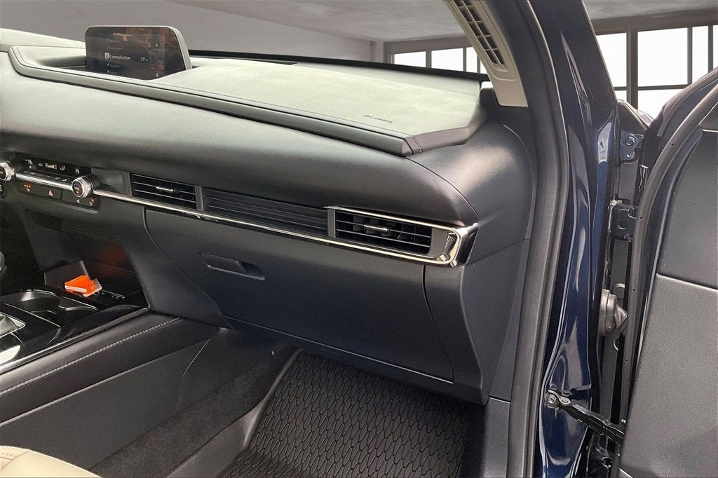 Certified. Clean CARFAX. 2025 Mazda CX-30 2.5 S Preferred Package Deep Crystal Blue Mica Fully serviced, CARFAX One Owner!, Alloy wheels, AppLink/Apple CarPlay and Android Auto, Auto High-beam Headlights, Automatic temperature control, Compass, Delay-off headlights, Emergency communication system: Mazda Connected Services (3-year trial subscription included), Exterior Parking Camera Rear, Fully automatic headlights, Heated door mirrors, Heated Front Bucket Seats, Heated front seats, Illuminated entry, Leather Shift Knob, Leather steering wheel, Leatherette Seat Trim, MAZDA CONNECT Infotainment System, Memory seat, Outside temperature display, Power door mirrors, Power driver seat, Power moonroof, Power windows, Rain sensing wipers, Rear side impact airbag, Rear window defroster, Remote keyless entry, Speed-sensing steering, Spoiler, Steering wheel mounted audio controls, Telescoping steering wheel, Tilt steering wheel, Turn signal indicator mirrors. 4D Sport Utility AWD SKYACTIV® 2.5L 4-Cylinder DOHC 16V 6-Speed Automatic