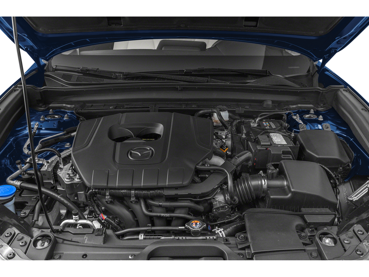4-Wheel Disc Brakes, 6 Speakers, ABS brakes, Air Conditioning, Alloy wheels, AM/FM radio, AppLink/Apple CarPlay and Android Auto, Auto High-beam Headlights, Automatic temperature control, Brake assist, Bumpers: body-color, Cargo Tray, Compass, Delay-off headlights, Driver door bin, Driver vanity mirror, Dual front impact airbags, Dual front side impact airbags, Electronic Stability Control, Emergency communication system: Mazda Connected Services (3-year trial subscription included), Exterior Parking Camera Rear, Front anti-roll bar, Front Bucket Seats, Front Center Armrest, Front dual zone A/C, Front reading lights, Front wheel independent suspension, Fully automatic headlights, Heated door mirrors, Heated Front Bucket Seats, Heated front seats, High Wall All-Weather Floor Mats, Illuminated entry, Knee airbag, Leather Shift Knob, Leather steering wheel, Leatherette Seat Trim, Low tire pressure warning, MAZDA CONNECT Infotainment System, Memory seat, Occupant sensing airbag, Outside temperature display, Overhead airbag, Overhead console, Panic alarm, Passenger door bin, Passenger vanity mirror, Power door mirrors, Power driver seat, Power moonroof, Power steering, Power windows, Radio data system, Radio: AM/FM Audio System, Rain sensing wipers, Rear seat center armrest, Rear side impact airbag, Rear window defroster, Rear window wiper, Remote keyless entry, Speed control, Speed-sensing steering, Split folding rear seat, Spoiler, Stainless Steel Rear Bumper Guard, Steering wheel mounted audio controls, Tachometer, Telescoping steering wheel, Tilt steering wheel, Traction control, Trip computer, Turn signal indicator mirrors, Variably intermittent wipers, Wheel Locks, and Wheels: 18 x 7J Aluminum Alloy.