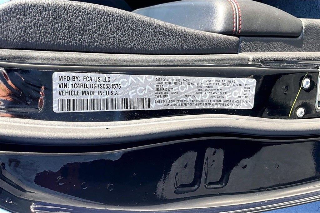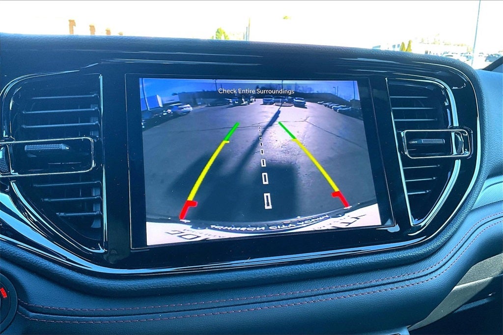 Quick Order Package 2BD GT, 3rd row seats: split-bench, Alloy wheels, Apple CarPlay/Android Auto, Auto-dimming Rear-View mirror, Electronic Stability Control, Exterior Mirrors w/Heating Element, Fully automatic headlights, Garage door transmitter, Gloss Black Exterior Mirrors, Heated door mirrors, Heated front seats, Heated steering wheel, Illuminated entry, Leather steering wheel, Outside temperature display, ParkView Rear Back-Up Camera, Power driver seat, Power Liftgate, Radio: Uconnect 5 Nav w/10.1 Display, Red Accent Stitching, Remote keyless entry, Sport steering wheel, Steering wheel mounted audio controls, Telescoping steering wheel, Tilt steering wheel, 3.45 Rear Axle Ratio, 4-Wheel Disc Brakes, 6 Speakers, ABS brakes, Air Conditioning, AM/FM radio: SiriusXM w/360L, Automatic temperature control, Brake assist, Bumpers: body-color, Cloth Bucket Seats w/Shift Insert, Compass, Delay-off headlights, Driver door bin, Driver vanity mirror, Dual front impact airbags, Dual front side impact airbags, Emergency communication system: Dodge Connect, Four wheel independent suspension, Front anti-roll bar, Front Bucket Seats, Front Center Armrest w/Storage, Front dual zone A/C, Front License Plate Bracket, Front reading lights, Knee airbag, Low tire pressure warning, Occupant sensing airbag, Overhead airbag, Overhead console, Panic alarm, Passenger door bin, Passenger vanity mirror, Power door mirrors, Power steering, Power windows, Radio data system, Rear air conditioning, Rear anti-roll bar, Rear reading lights, Rear seat center armrest, Rear window defroster, Rear window wiper, Speed control, Speed-sensing steering, Speed-Sensitive Wipers, Split folding rear seat, Spoiler, Tachometer, Traction control, Trip computer, Variably intermittent wipers, Voltmeter, and Wheels: 20 x 8.0 Fine Silver.