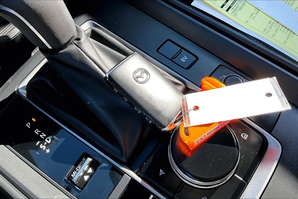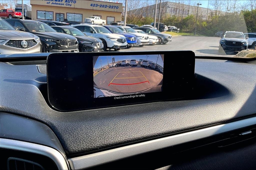 Weather Package, 4-Wheel Disc Brakes, 8 Speakers, ABS brakes, Air Conditioning, Alloy wheels, AM/FM radio, AppLink/Apple CarPlay and Android Auto, Auto High-beam Headlights, Automatic temperature control, Brake assist, Bumpers: body-color, Delay-off headlights, Driver door bin, Driver vanity mirror, Dual front impact airbags, Dual front side impact airbags, Electronic Stability Control, Emergency communication system: MAZDA CONNECT, Exterior Parking Camera Rear, Front anti-roll bar, Front Bucket Seats, Front Center Armrest, Front dual zone A/C, Front reading lights, Front wheel independent suspension, Fully automatic headlights, Half Leatherette Seat Trim, Heated door mirrors, Heated Front Bucket Seats, Heated front seats, Illuminated entry, Knee airbag, Leather Shift Knob, Leather steering wheel, Low tire pressure warning, Occupant sensing airbag, Outside temperature display, Overhead airbag, Overhead console, Panic alarm, Passenger door bin, Passenger vanity mirror, Power door mirrors, Power driver seat, Power Liftgate, Power steering, Power windows, Radio data system, Radio: AM/FM/HD 8-Speaker Audio Sound System, Rain sensing wipers, Rear seat center armrest, Rear window defroster, Rear window wiper, Remote keyless entry, Speed control, Speed-sensing steering, Split folding rear seat, Spoiler, Steering wheel mounted audio controls, Tachometer, Telescoping steering wheel, Tilt steering wheel, Traction control, Trip computer, Turn signal indicator mirrors, Variably intermittent wipers, and Wheels: 17 x 7J Aluminum Alloy Black Metallic Finish.