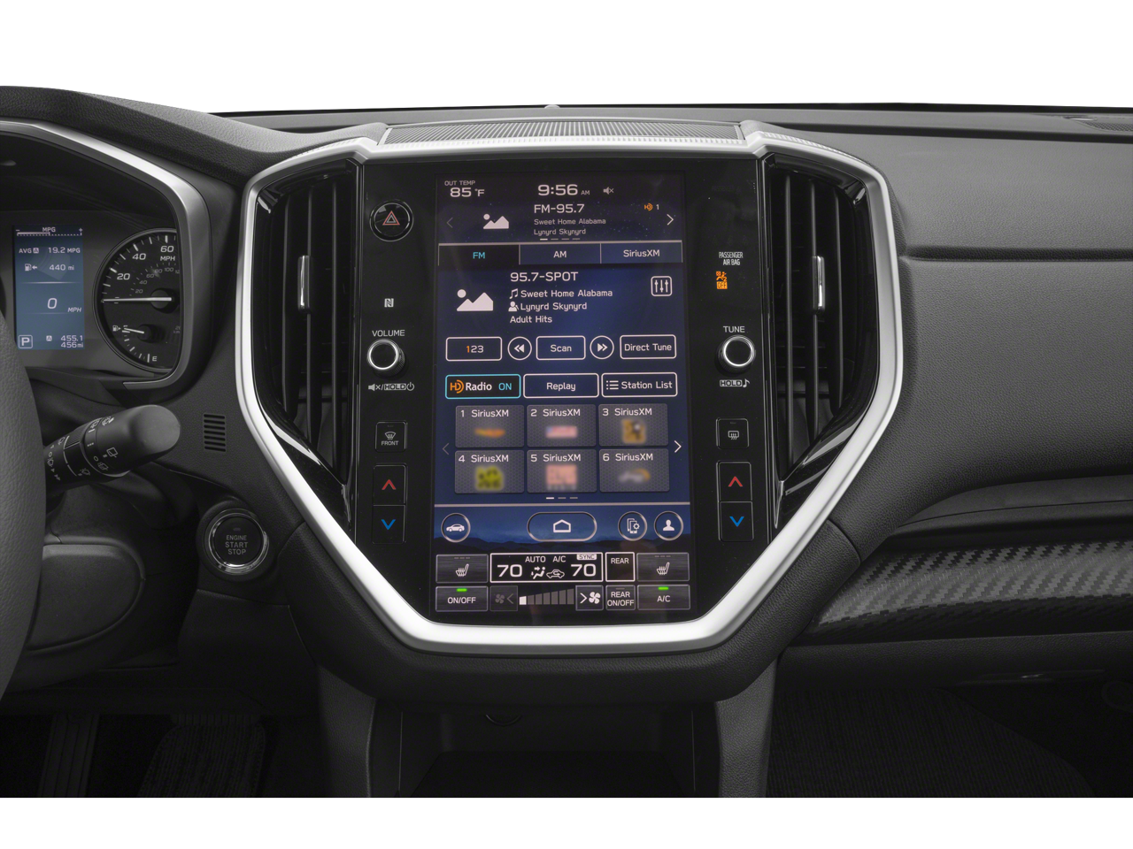 - Radio: Subaru 11.6" Multimedia Plus System -inc: AM/FM stereo HD Radio, multi-touch gesture high resolution display screen, voice activated controls, Bluetooth® audio streaming and hands-free phone connectivity w/SMS text messaging connectivity (refer to subaru.com for cell phone compatibility), Near Field Communication (NFC), iPod control capability, smartphone integration for Android Auto and Apple CarPlay w/full screen view and wireless connection, USB and Over The Air (OTA) audio system update, steering wheel control switches for audio and Bluetooth®, 6 speakers, 3.5mm illuminated auxiliary input jack, illuminated USB A and C input/charge ports, SiriusXM w/360L (4 months free trial included/subscription required after) and SiriusXM Travel Link (4 months free trial included/subscription required after)